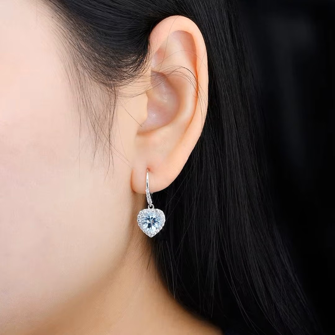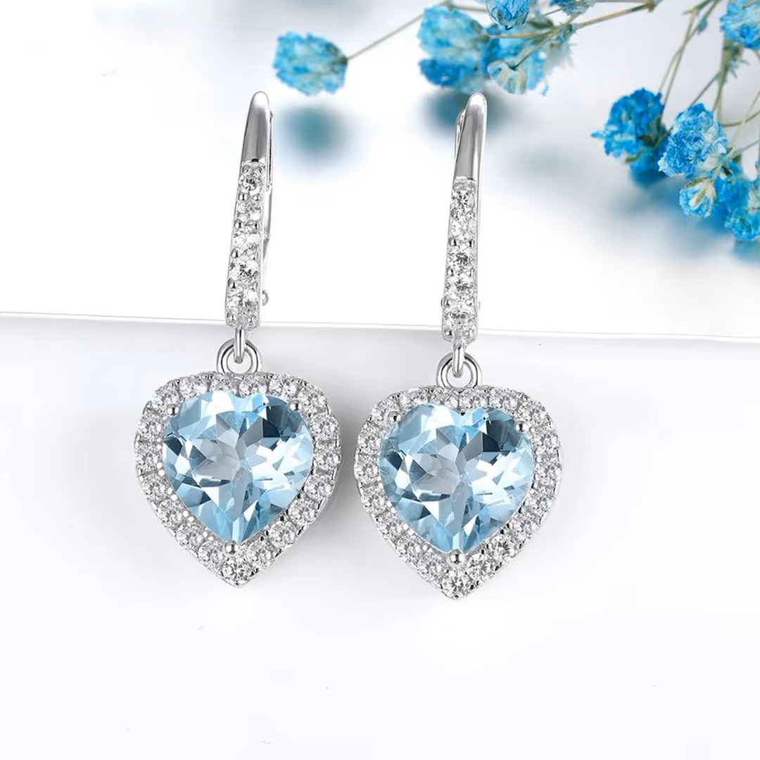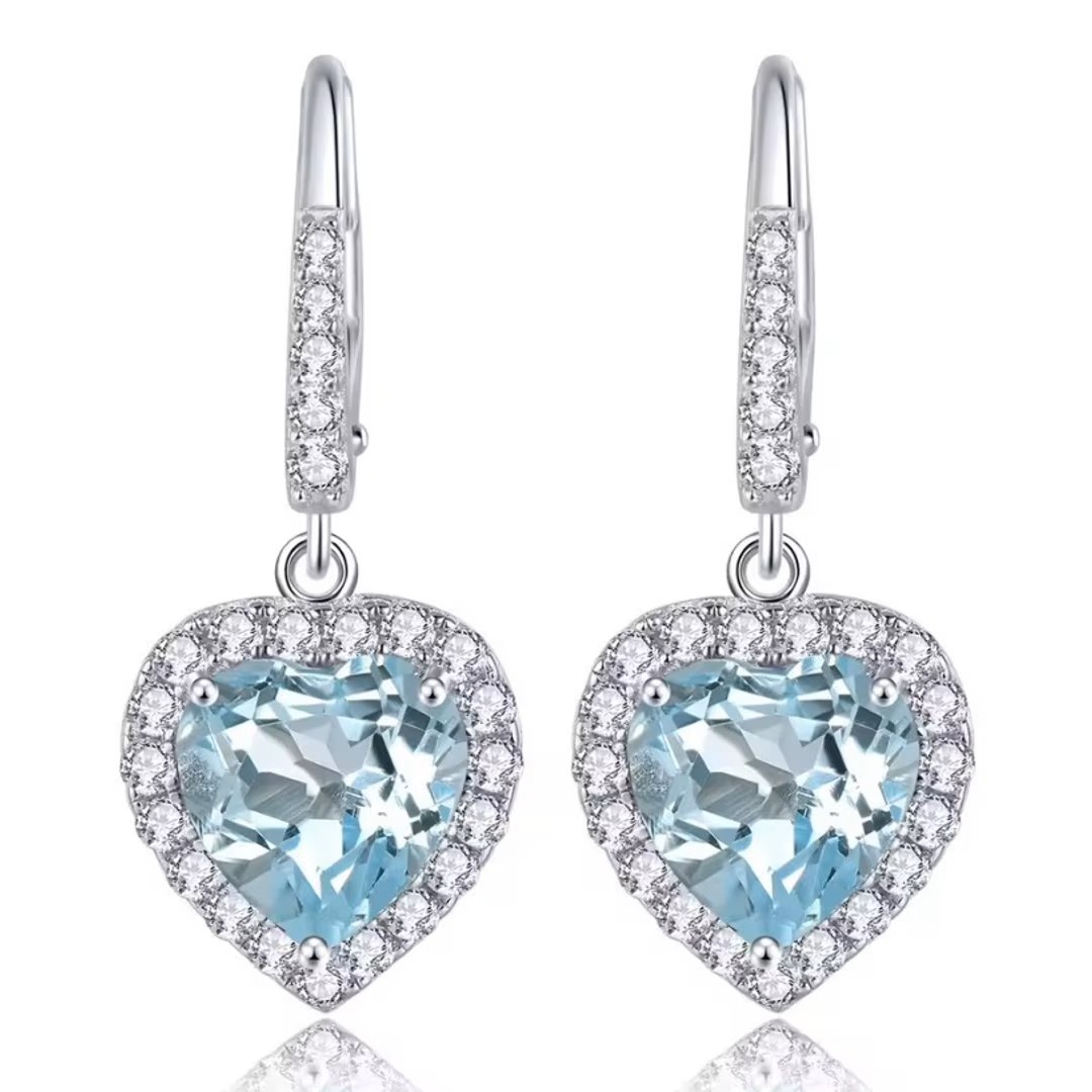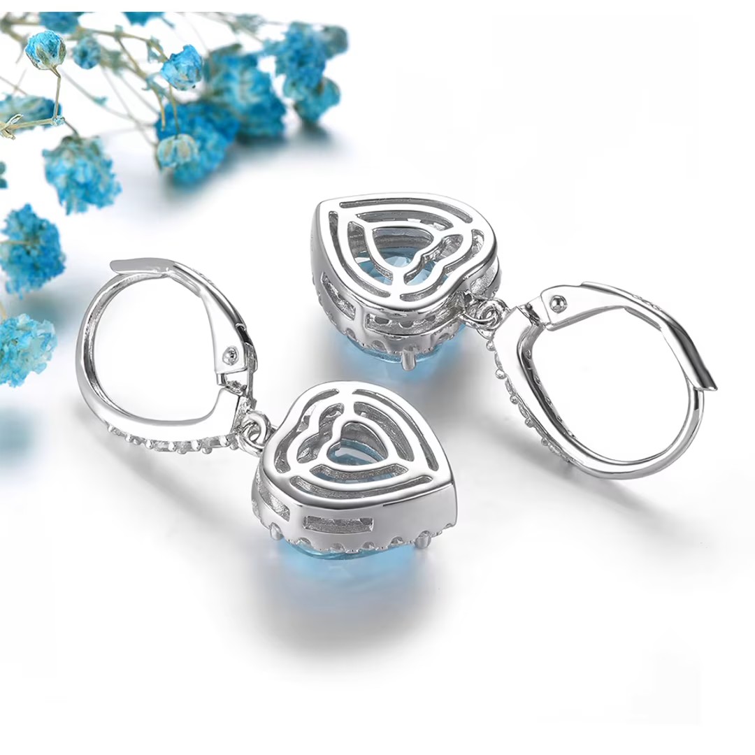 - الوصف: أقراط فاخرة للمناسبات من حجر التوباز الأزرق على شكل قلب، فضة إسترليني