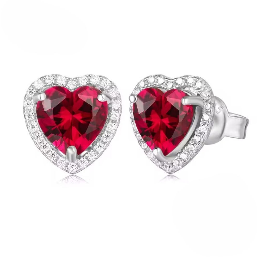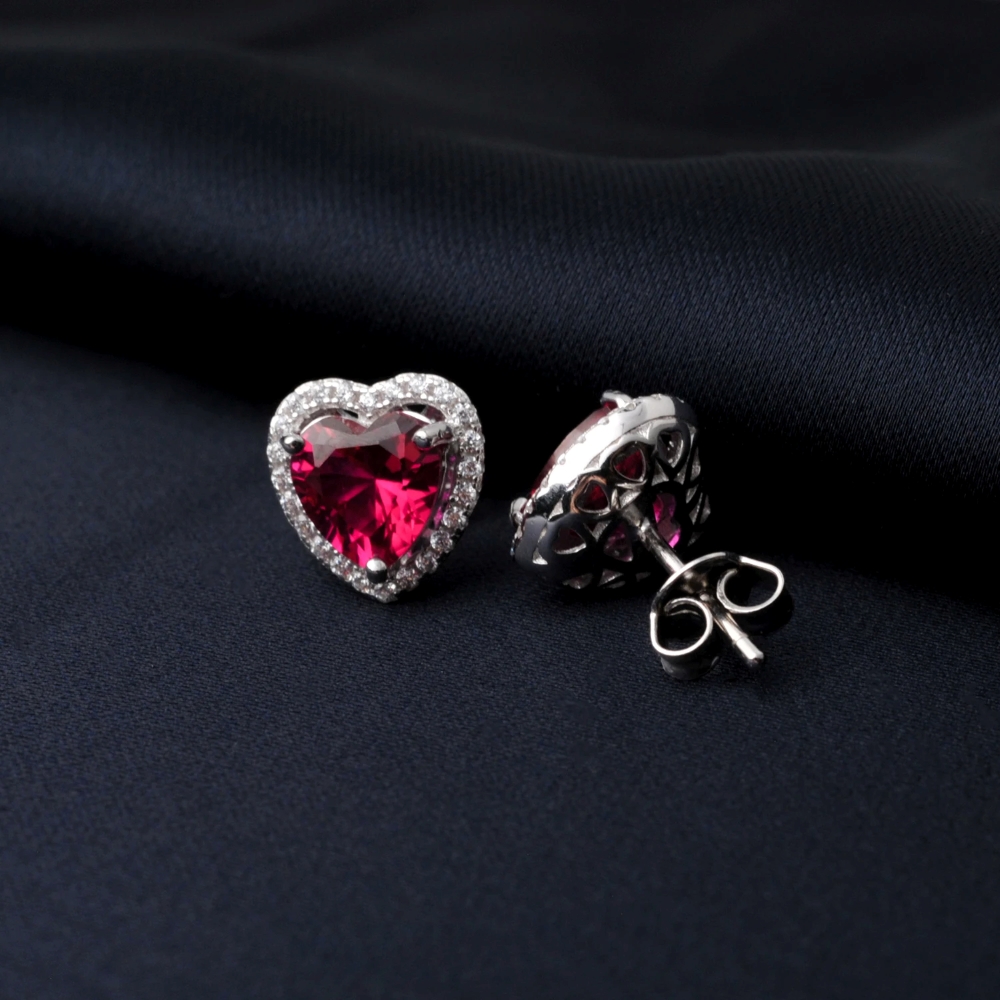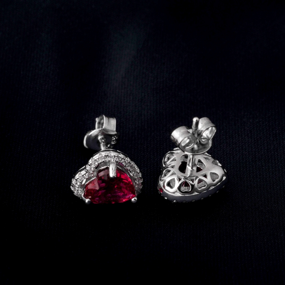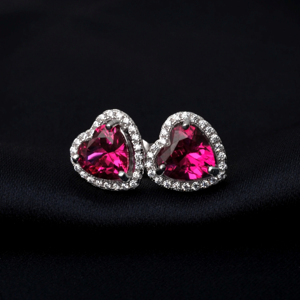 - الوصف: أقراط فاخرة للمناسبات من الياقوت الروبي الأحمر على شكل قلب ، فضة إسترليني