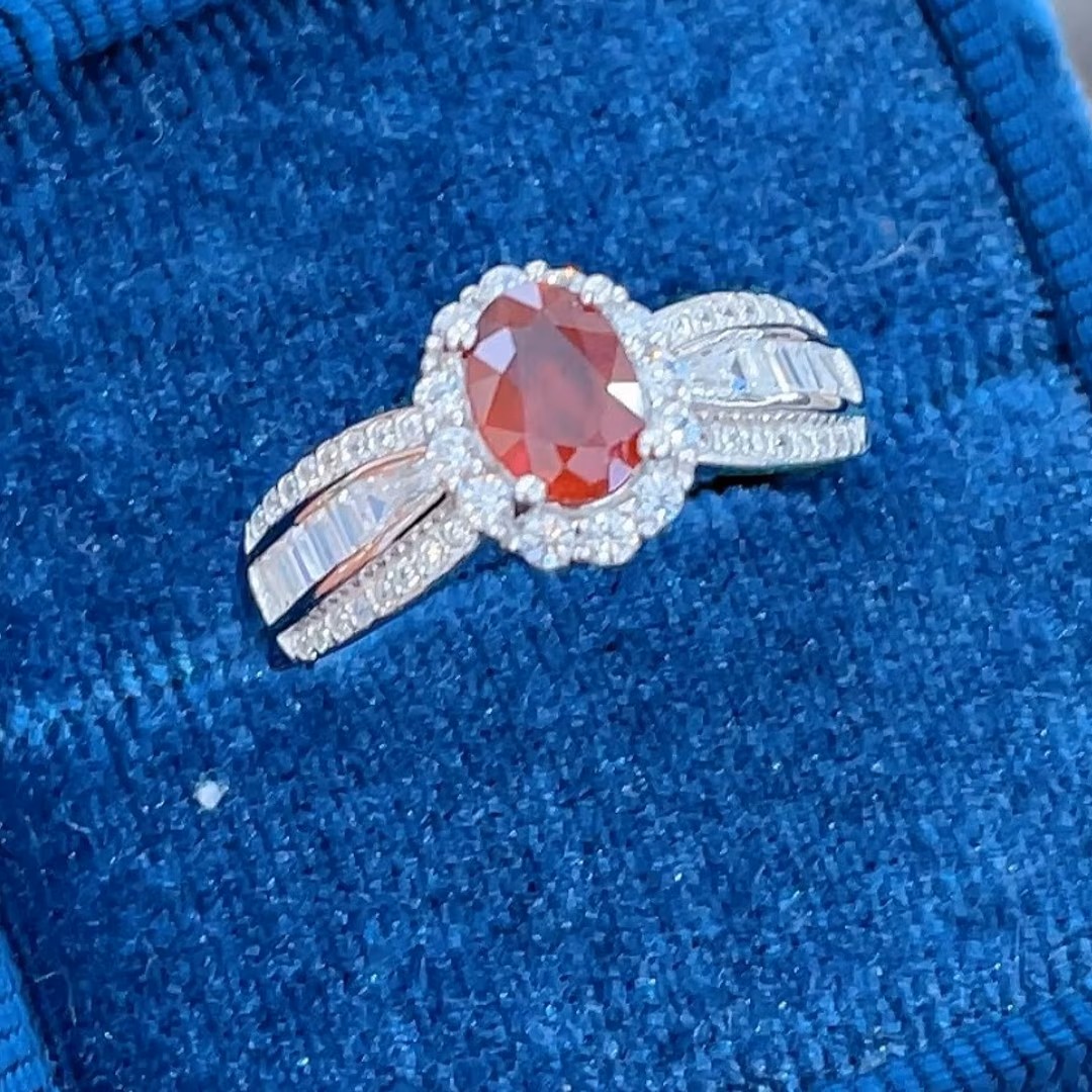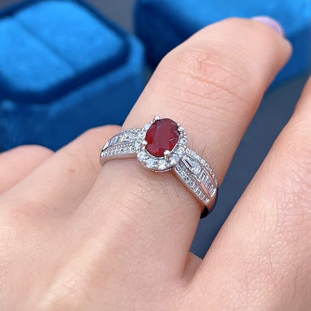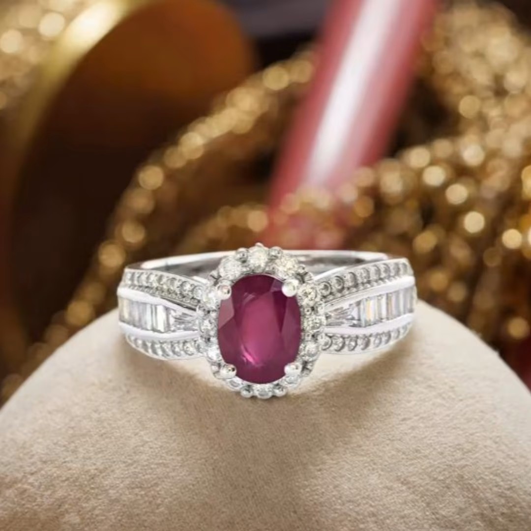 • الوصف: خاتم فاخر وراقي للمناسبات من حجر الروبي الياقوت الأحمر، مطلي ذهب أبيض، فضة إسترليني