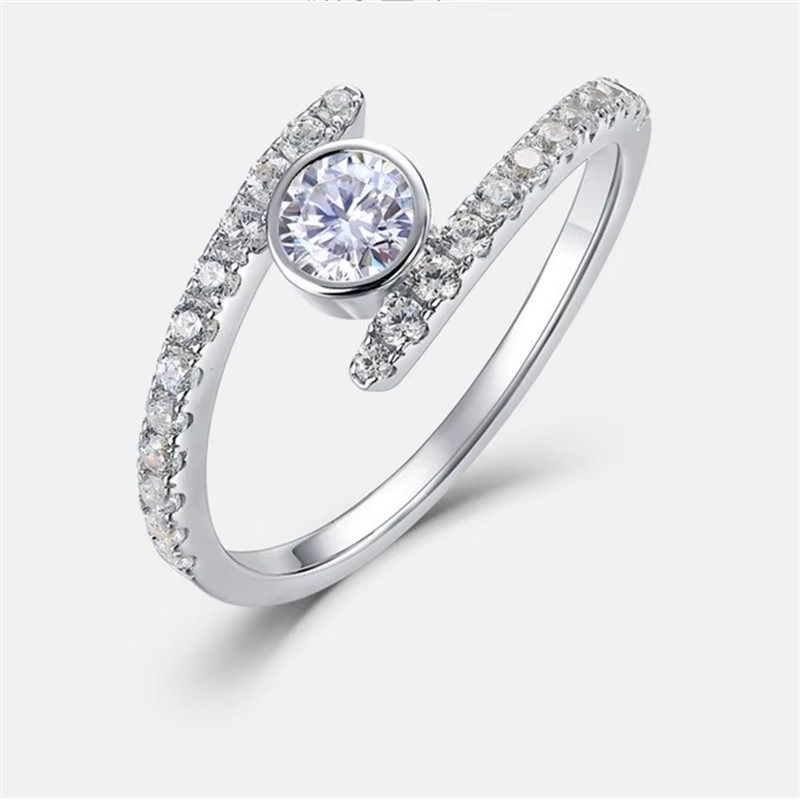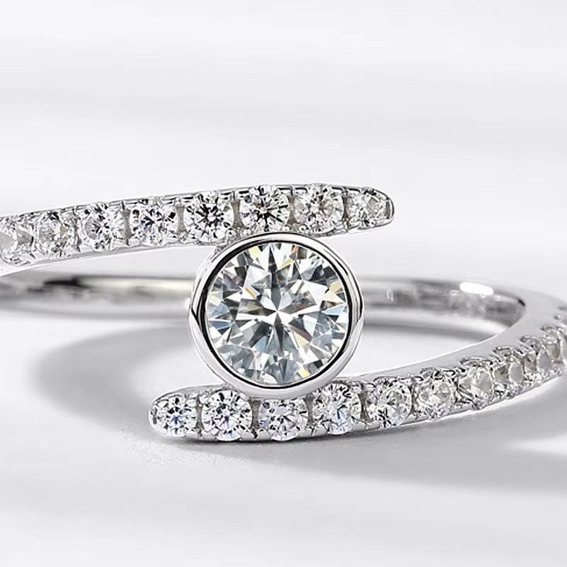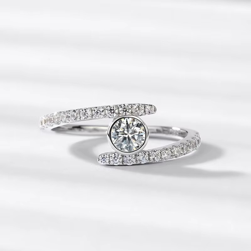 - الوصف:خاتم عصري وحديث مويسانيتي ذو جودة عالية مطلي بالذهب الأبيض، فضة إسترليني