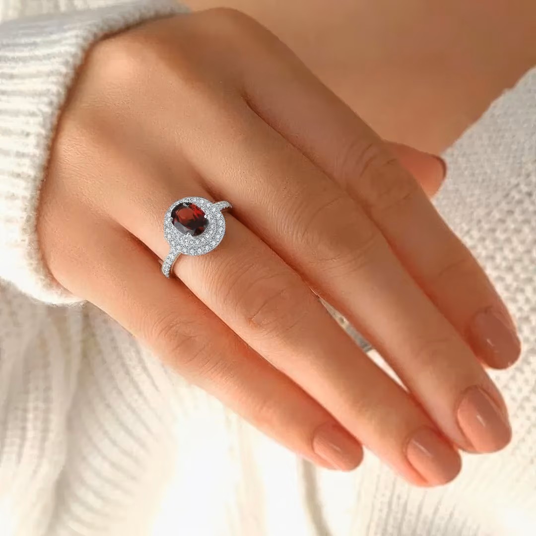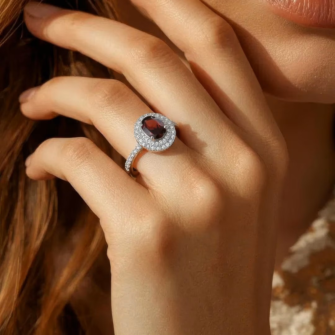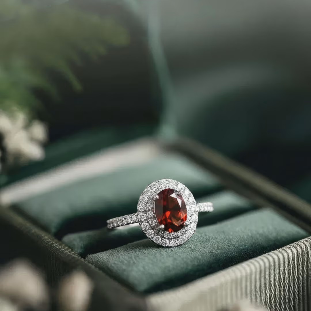 • الوصف: خاتم فاخر وراقي للمناسبات من حجر الجرانيت الأحمر على شكل بيضاوي، فضة إسترليني