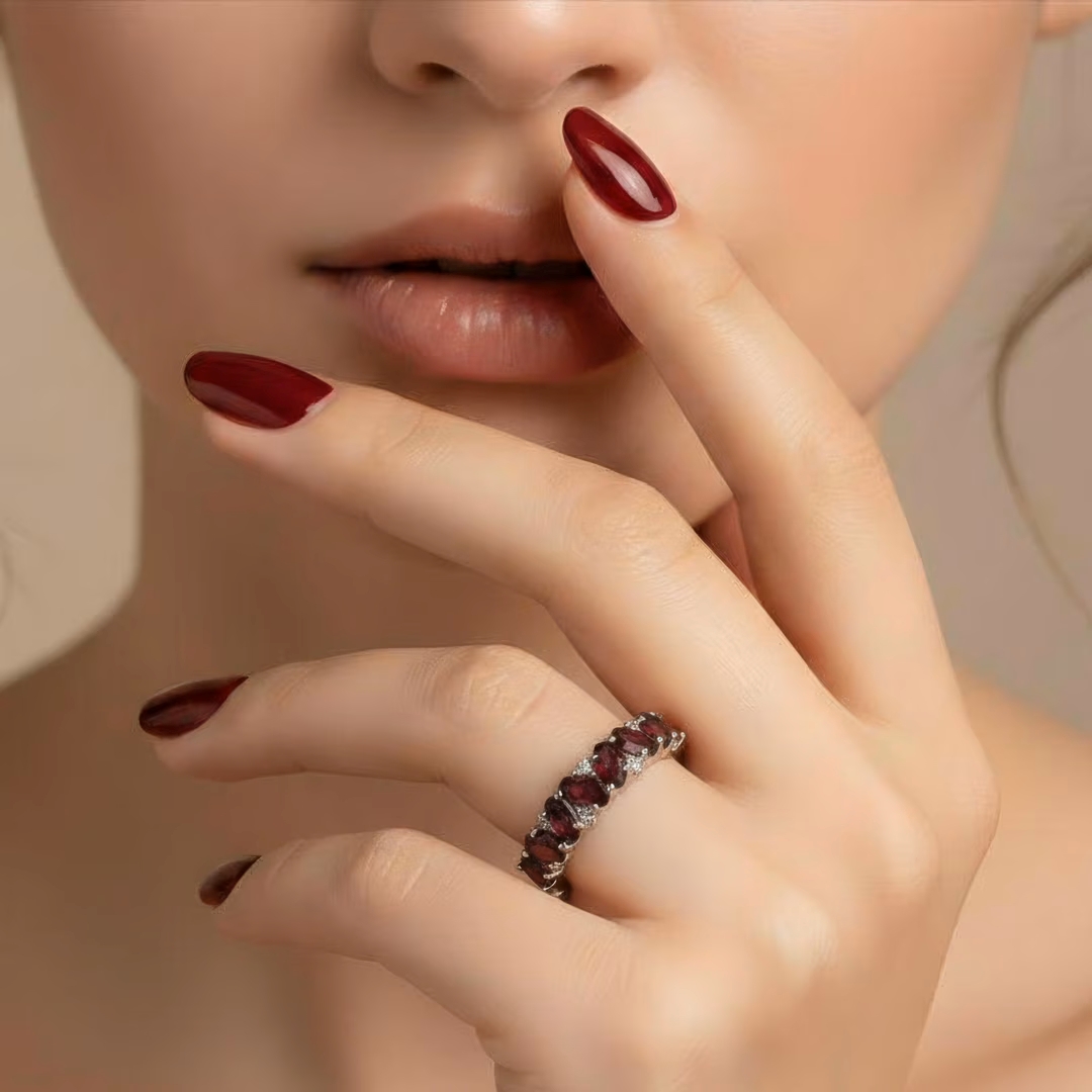 الوصف: خاتم فاخر وراقي للمناسبات من حجر العقيق الطبيعي الأحمر، فضة إسترليني
