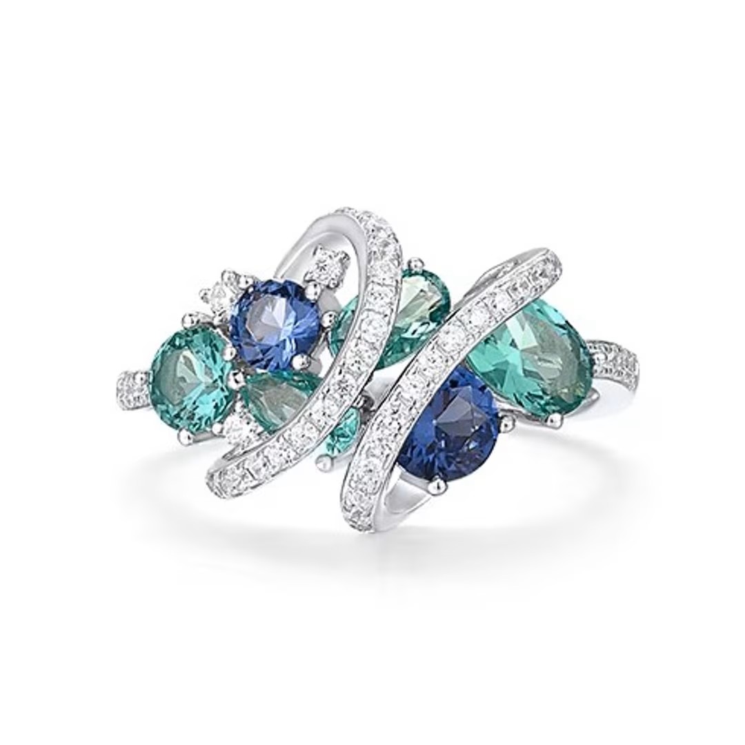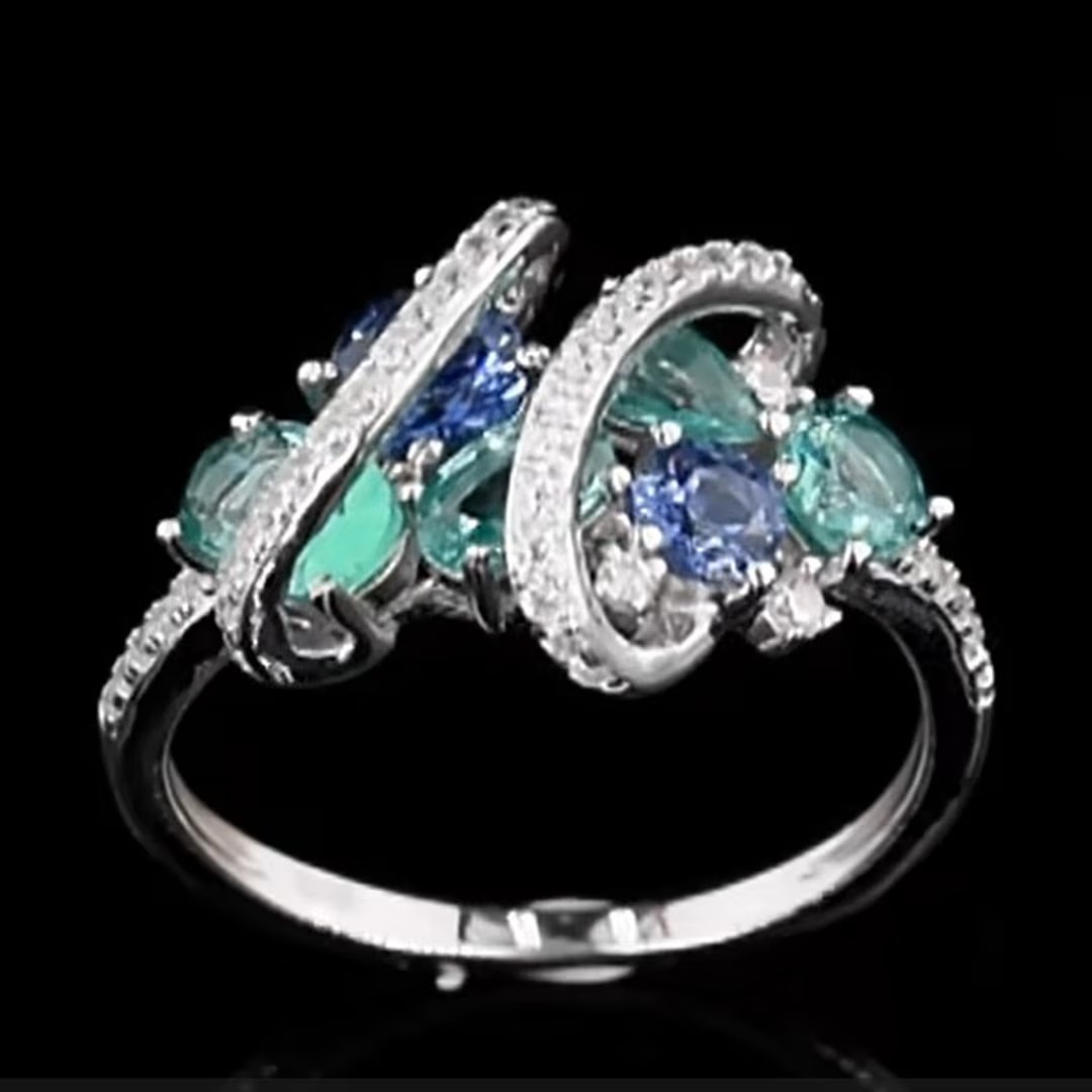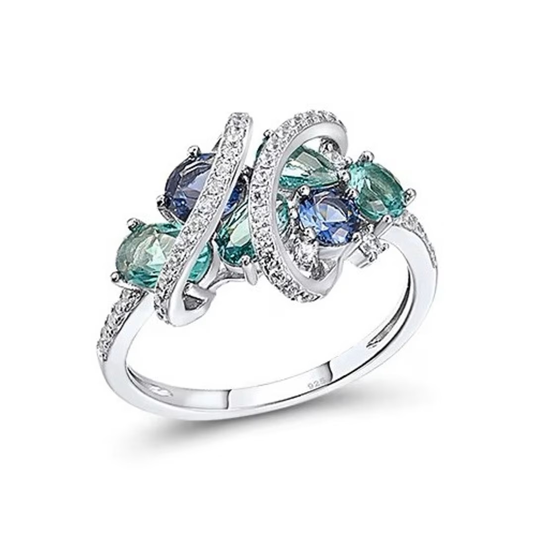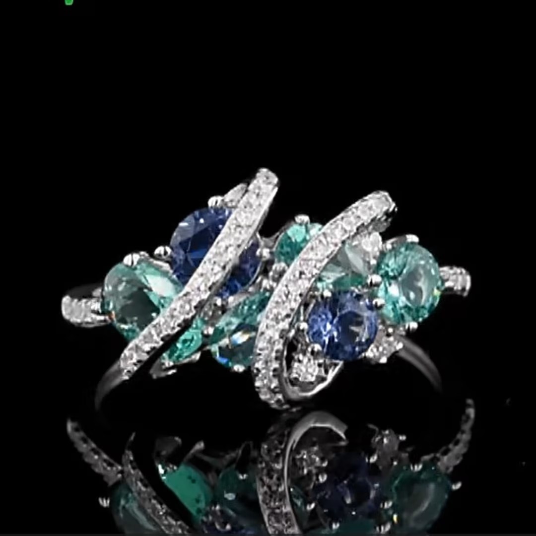 الوصف: خاتم فاخر للمناسبات والأعراس، أحجار ملونة عالية الجودة، فضة إسترليني