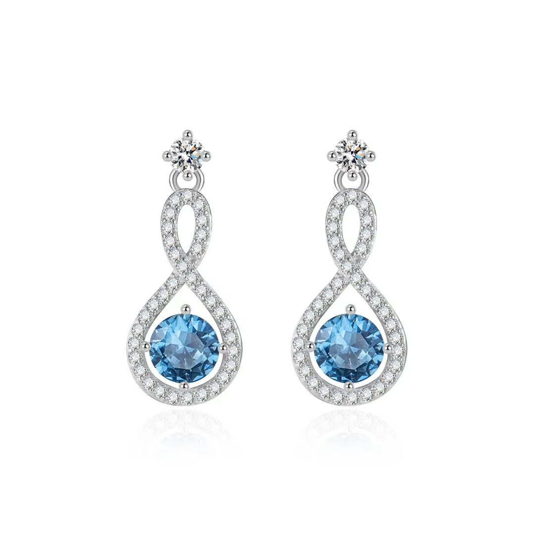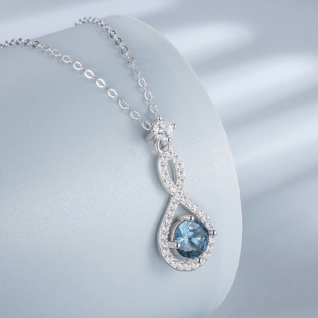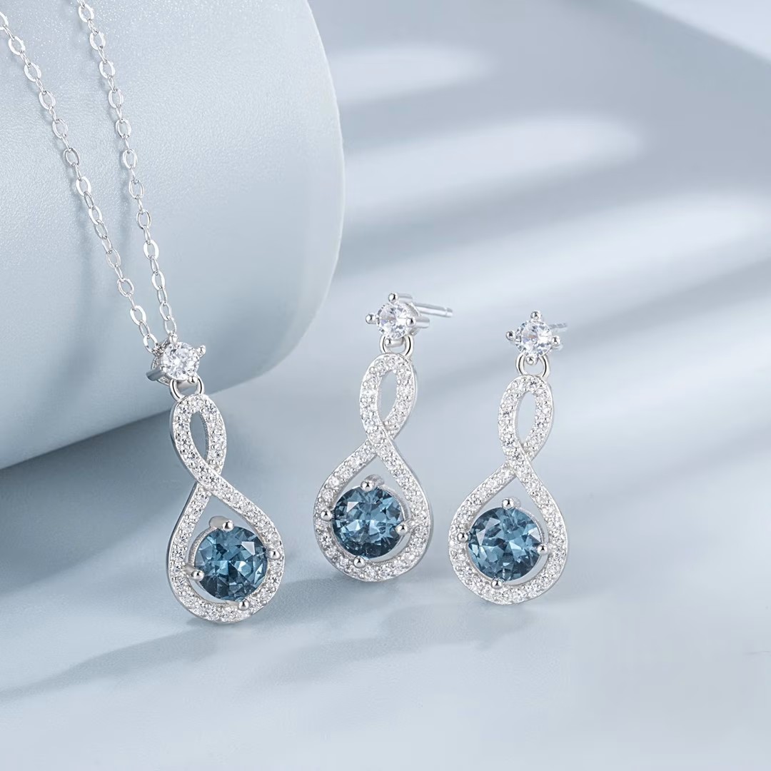 الوصف: طقم مجوهرات عصري وفاخر اينفينتي يتكون من قلادة وأقراط، فضة إسترليني