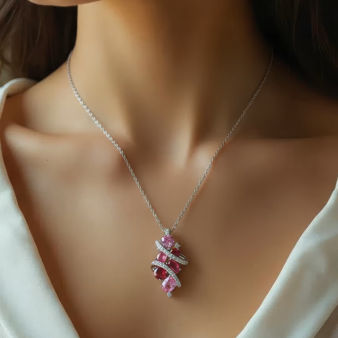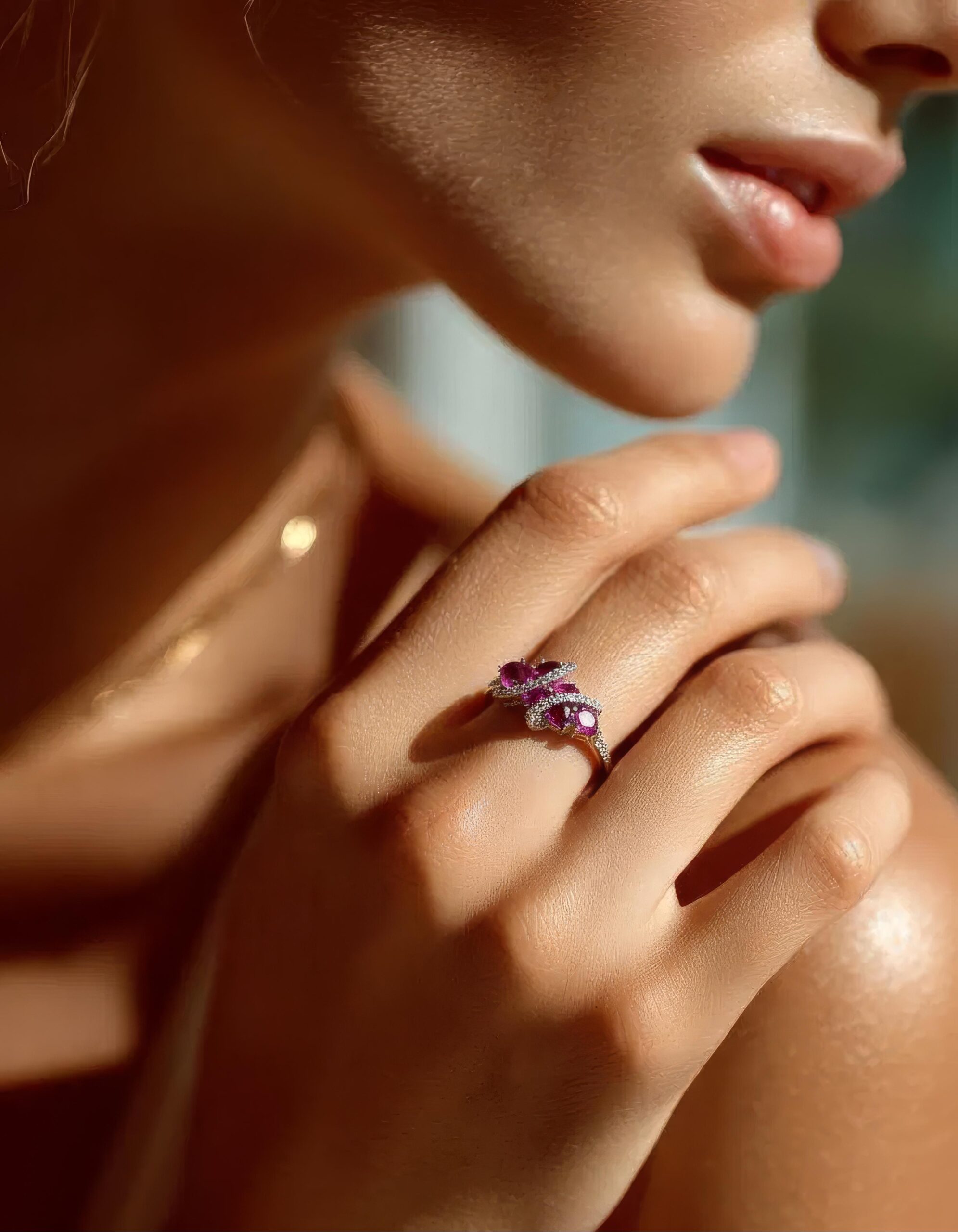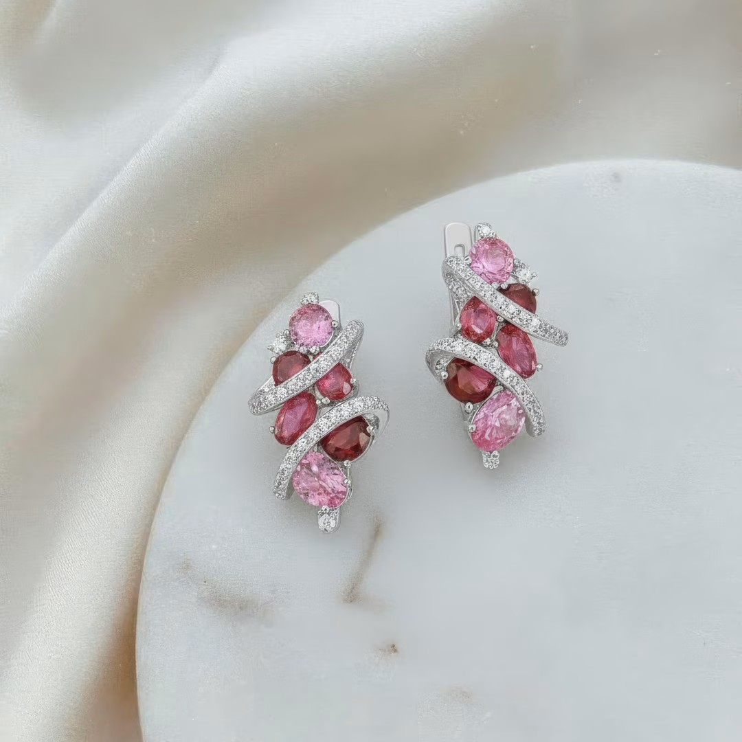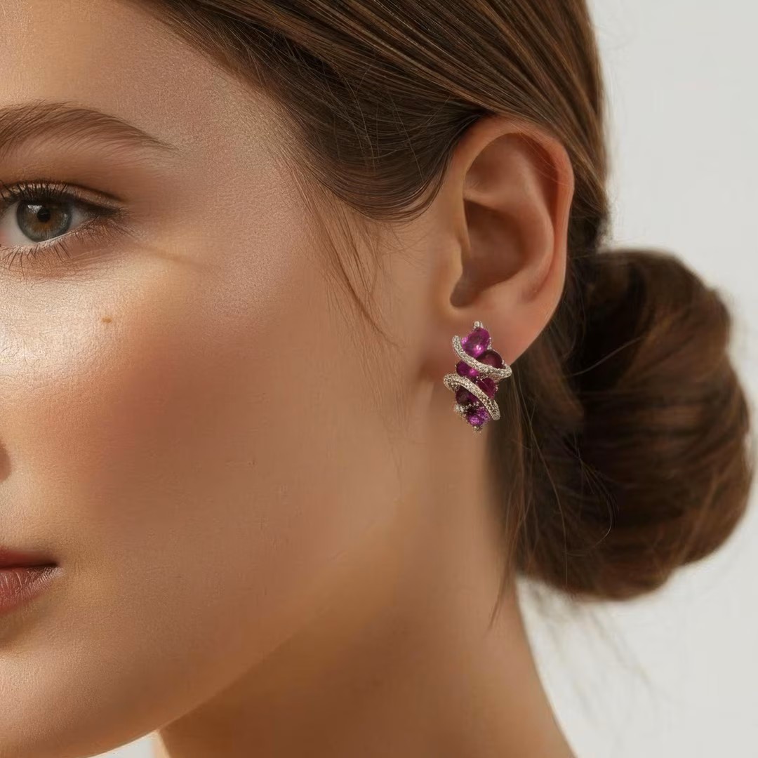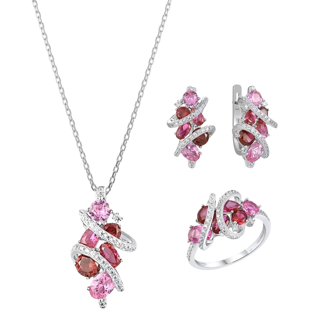 الوصف: طقم مجوهرات عصري وفاخرللمناسبات، أحجار كريمة جودة عالية، أقراط وخاتم وقلادة، فضة إسترليني