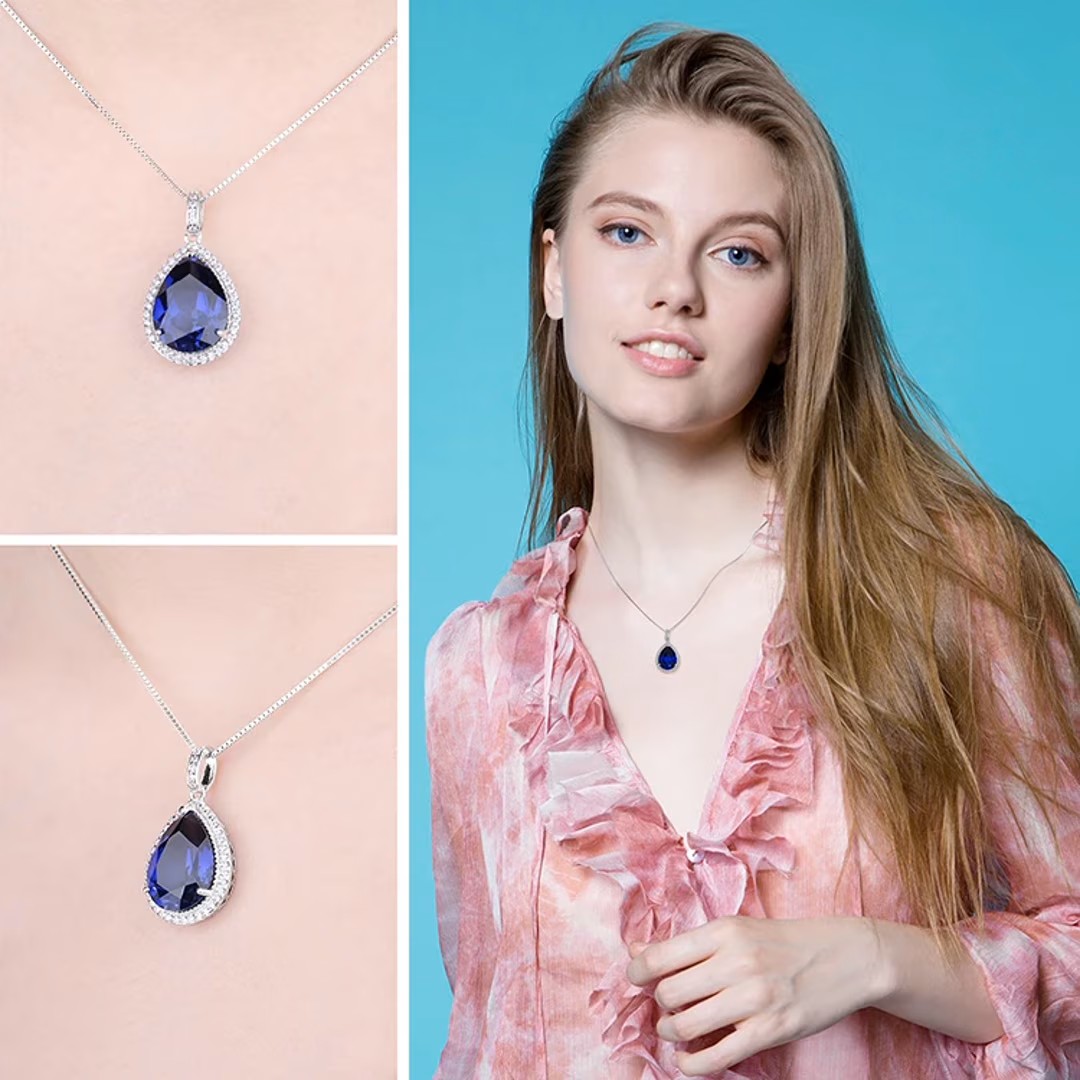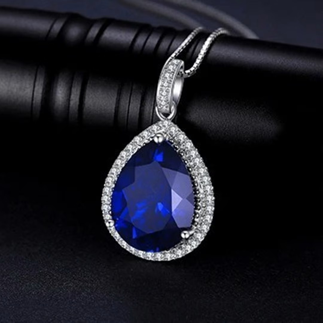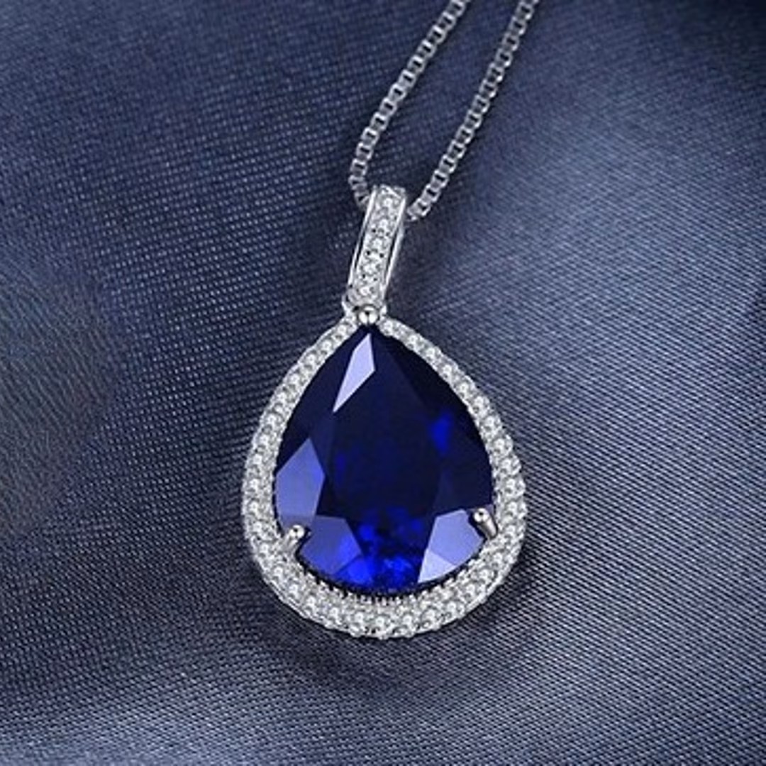 • الوصف: قلادة فاخرة للمناسبات من الياقوت الأزرق الزفير،  فضة إسترليني