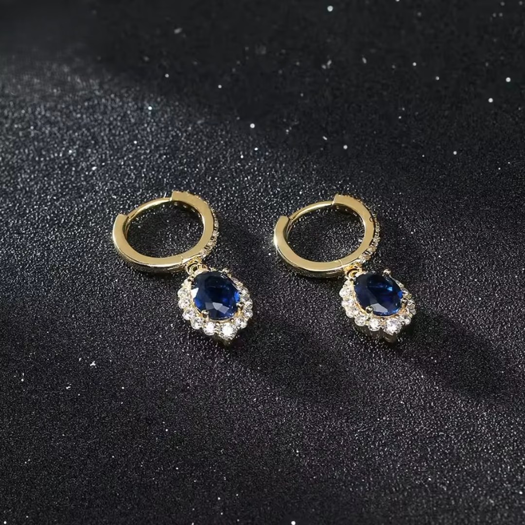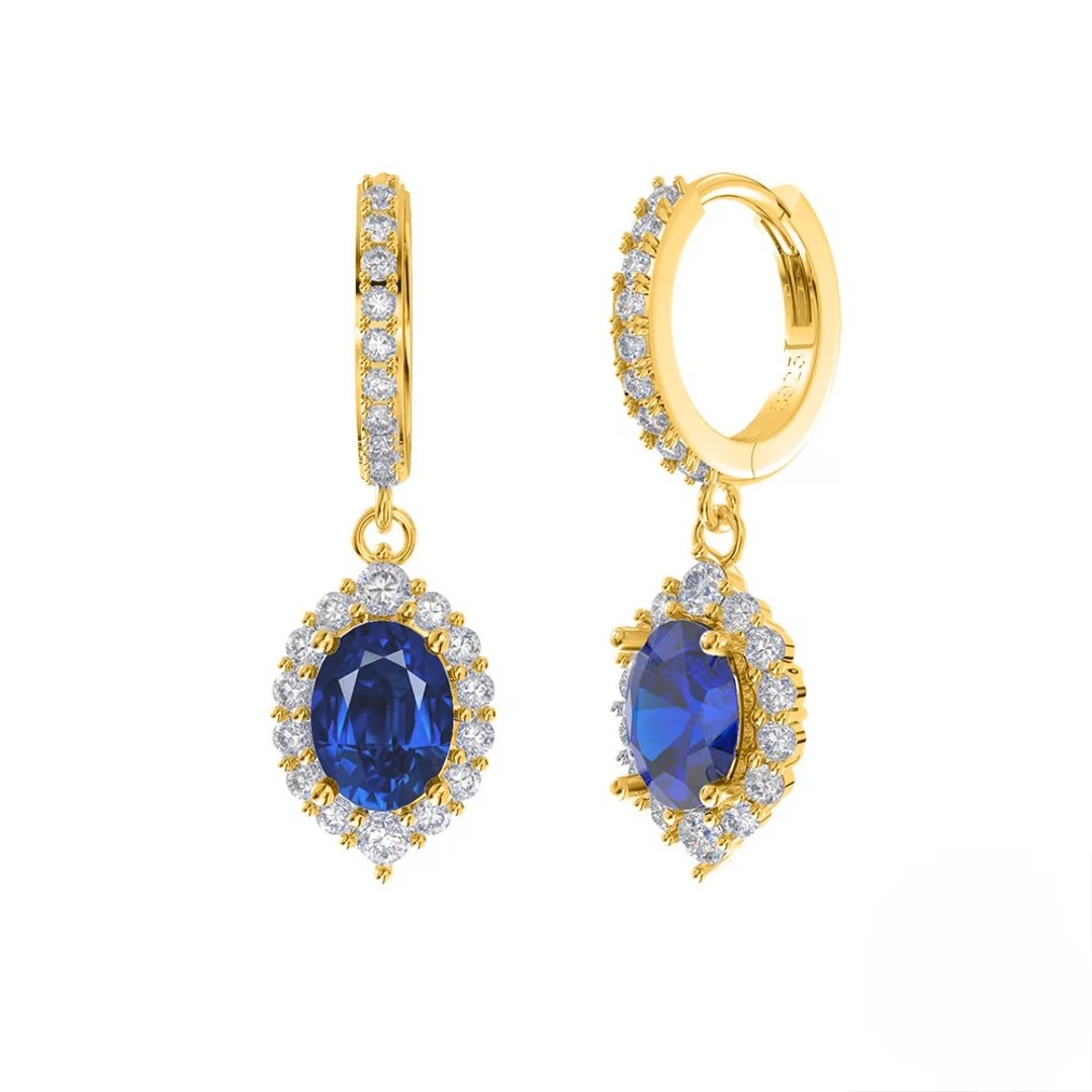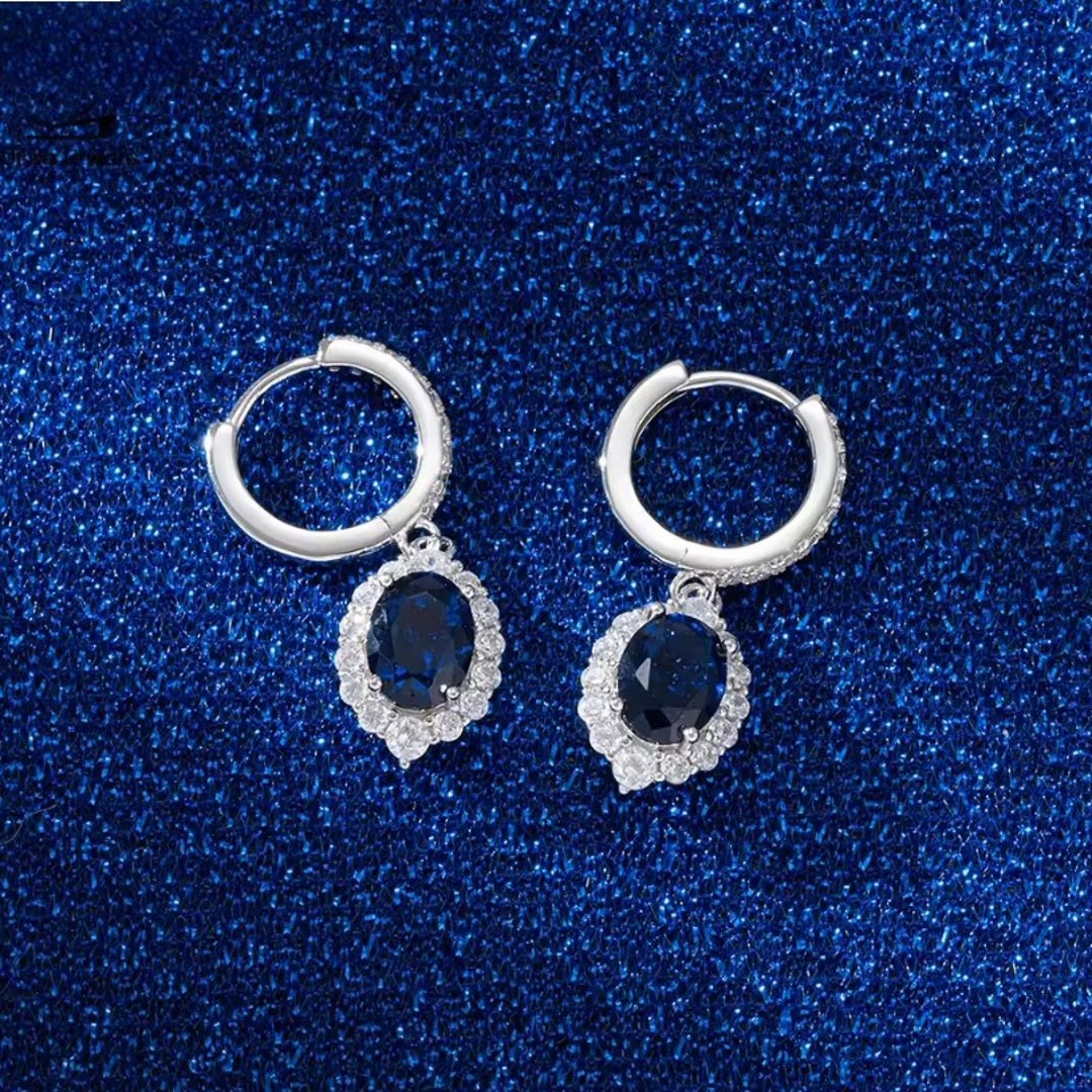 الوصف: أقراط فاخرة للمناسبات والأعراس من الحجر الأزرق ذو الجودة العالية بتصميم دمعة، فضة إسترليني