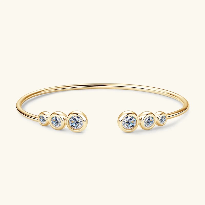 - الوصف: اسوارة حديثة وعصرية فاخرة مويسانيتي مفتوحة، فضة إسترليني مطلي بالذهب