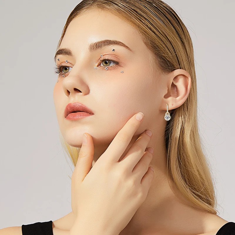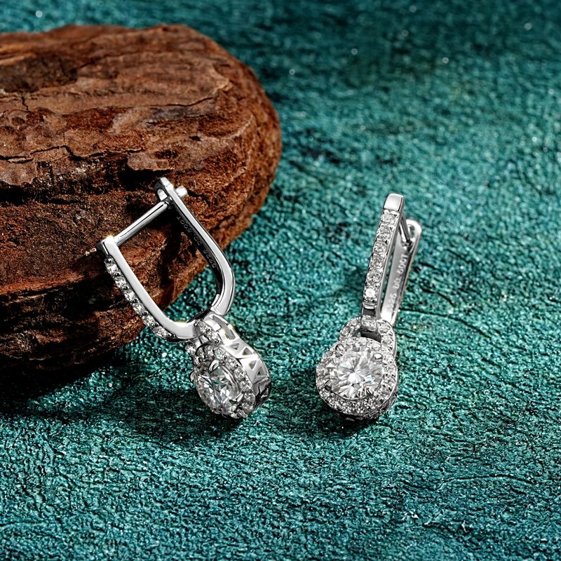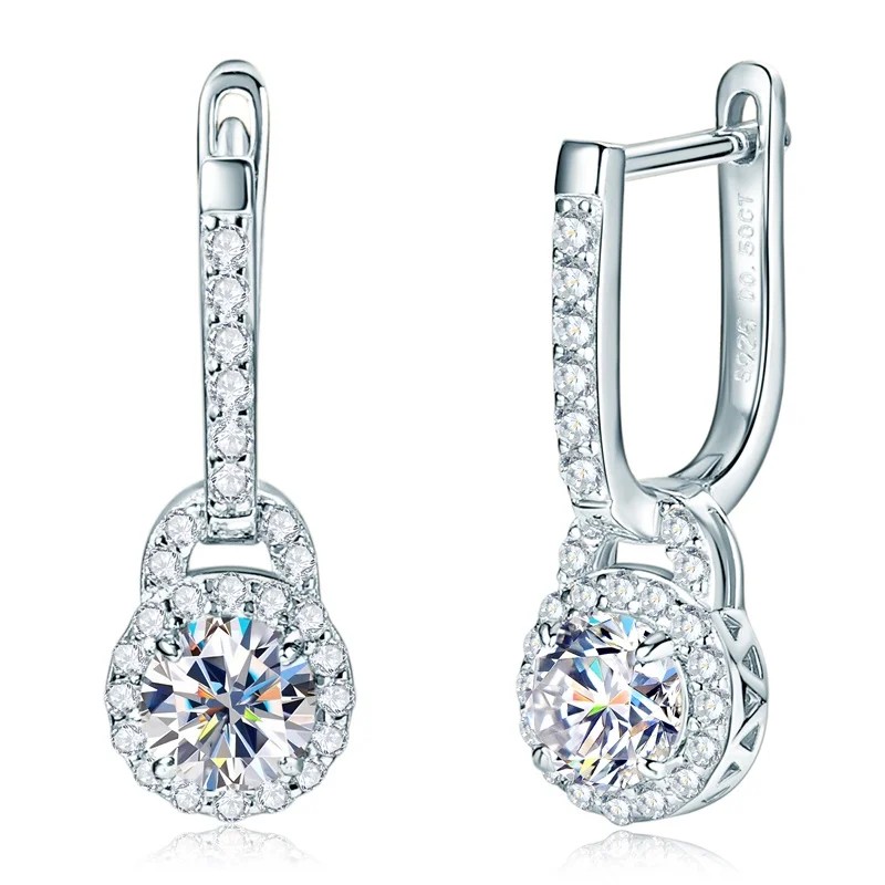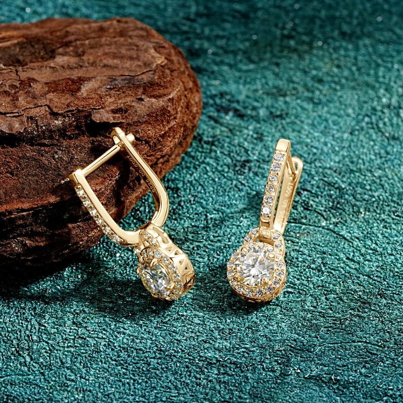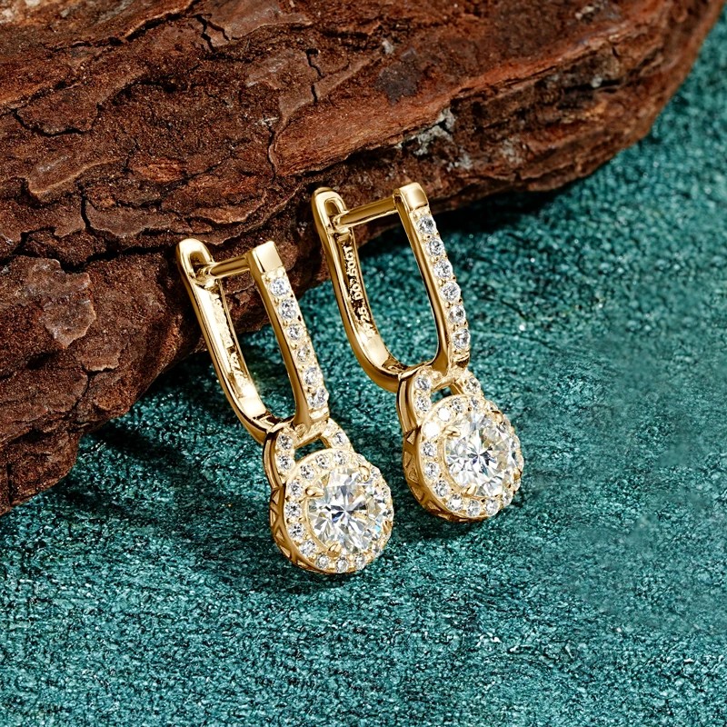 الوصف: أقراط عصرية وحديثة، مويسانيتي، فضة إسترليني مطلي بالذهب