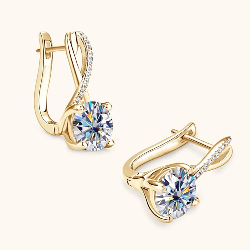 الوصف: أقراط عصرية وحديثة، مويسانيتي، فضة إسترليني مطلي بالذهب