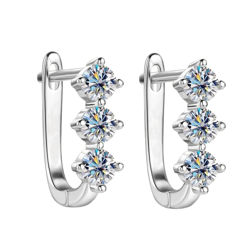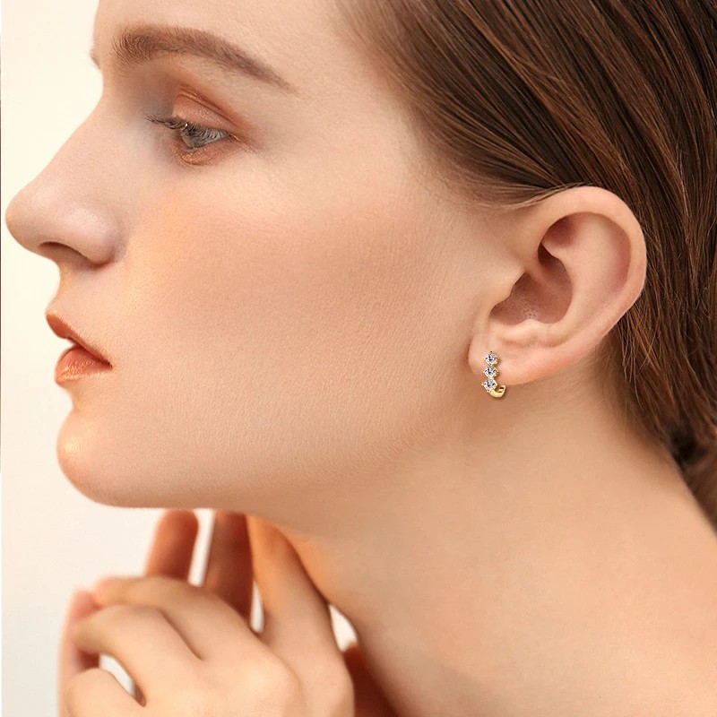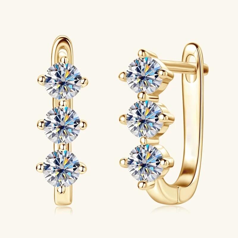 الوصف: أقراط عصرية وحديثة، مويسانيتي يتكون من 3 أحجار ، فضة إسترليني مطلي بالذهب