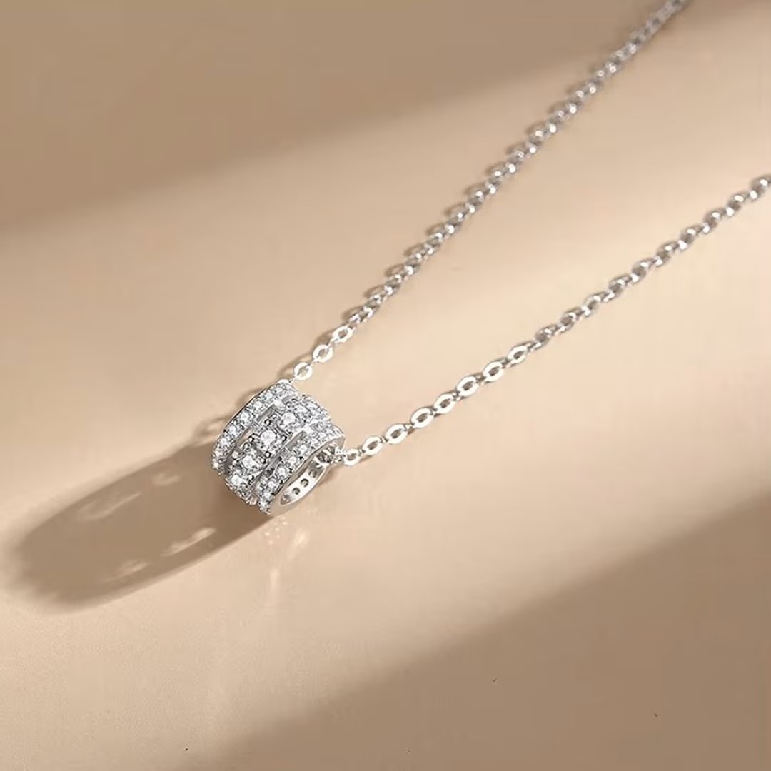 الوصف: قلادة فاخرة حديثة وعصرية مستديرة فائقة الجودة، فضة إسترليني