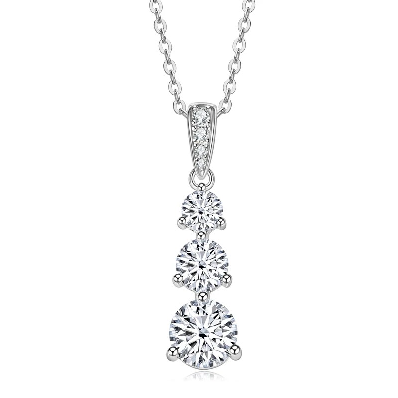 - الوصف: قلادة بتصميم حديث وفاخر مويسانيتي يتكون من 3 أحجار ذو جودة عالية، فضة إسترليني
