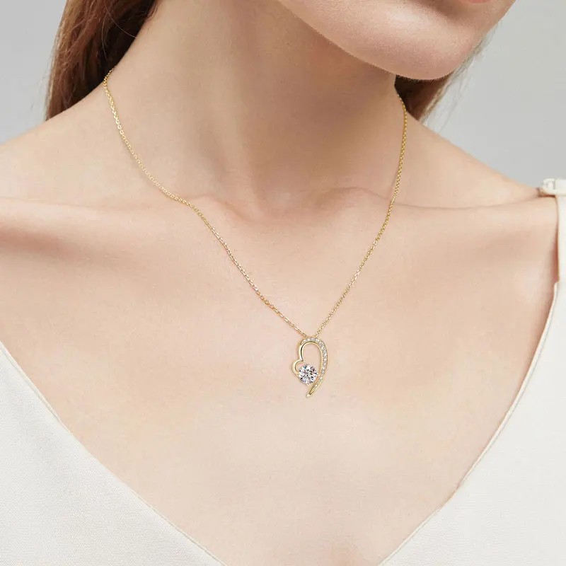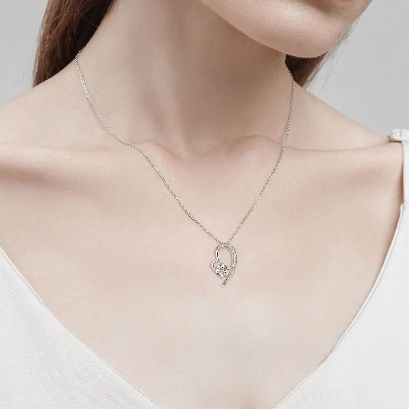 الوصف: قلادة بتصميم حديث وفاخر مويسانيتي على شكل قلب ذو جودة عالية، فضة إسترليني