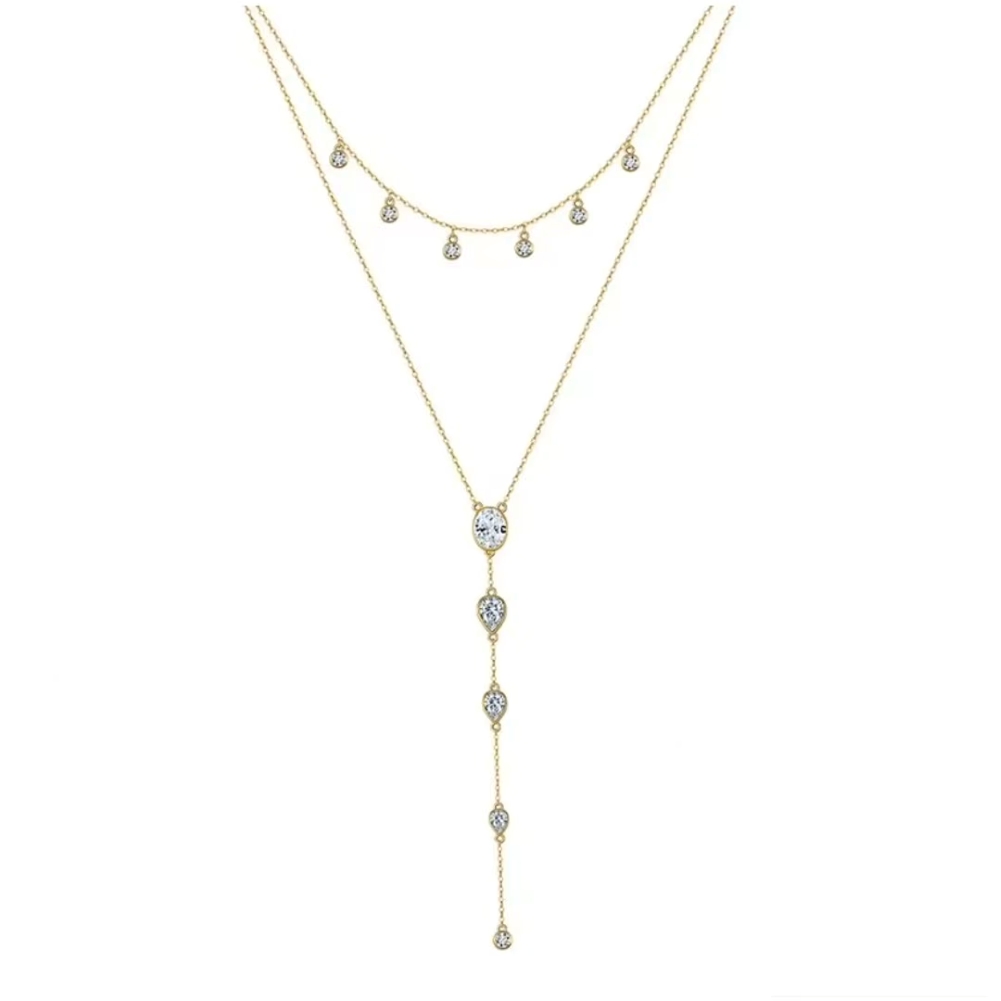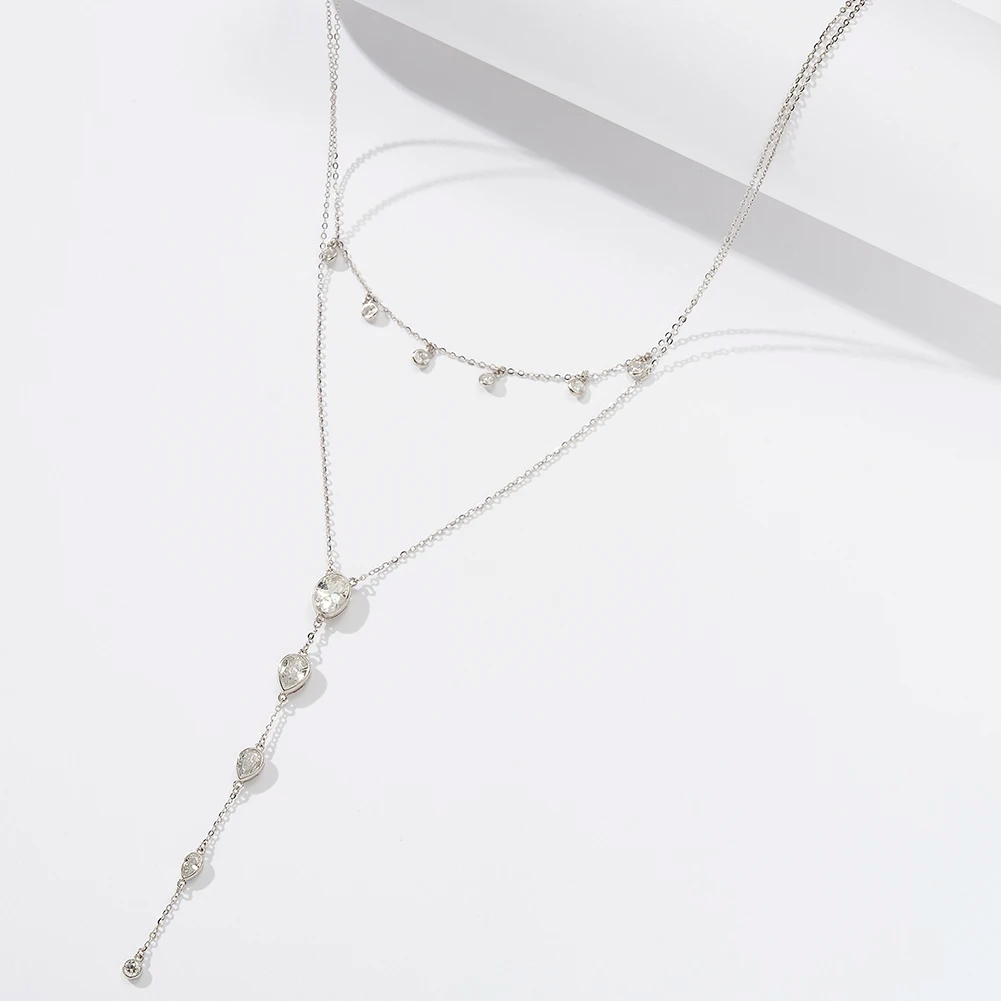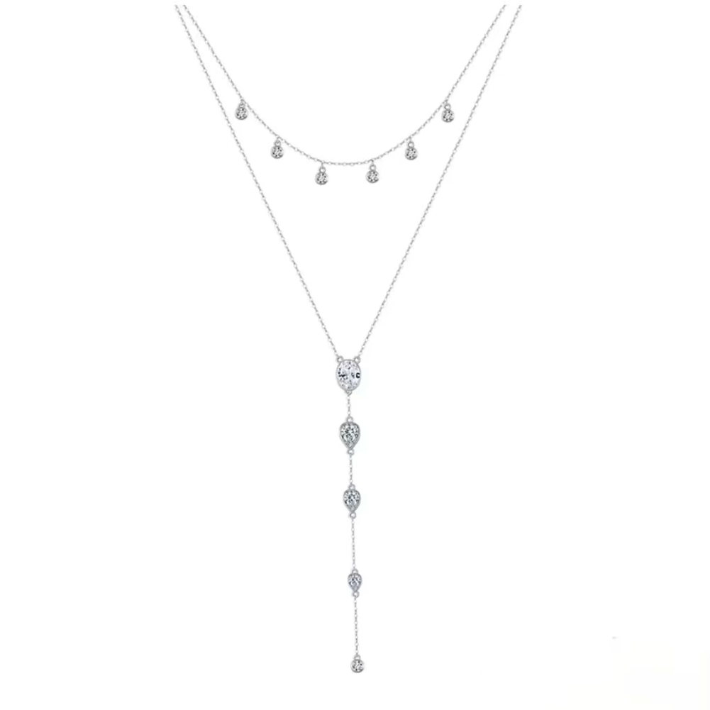 الوصف: قلادة بتصميم حديث وفاخر طويلة تتكون من طبقتين ذو جودة عالية، فضة إسترليني