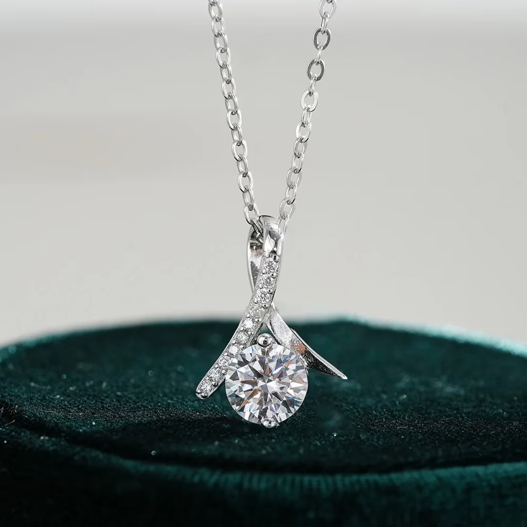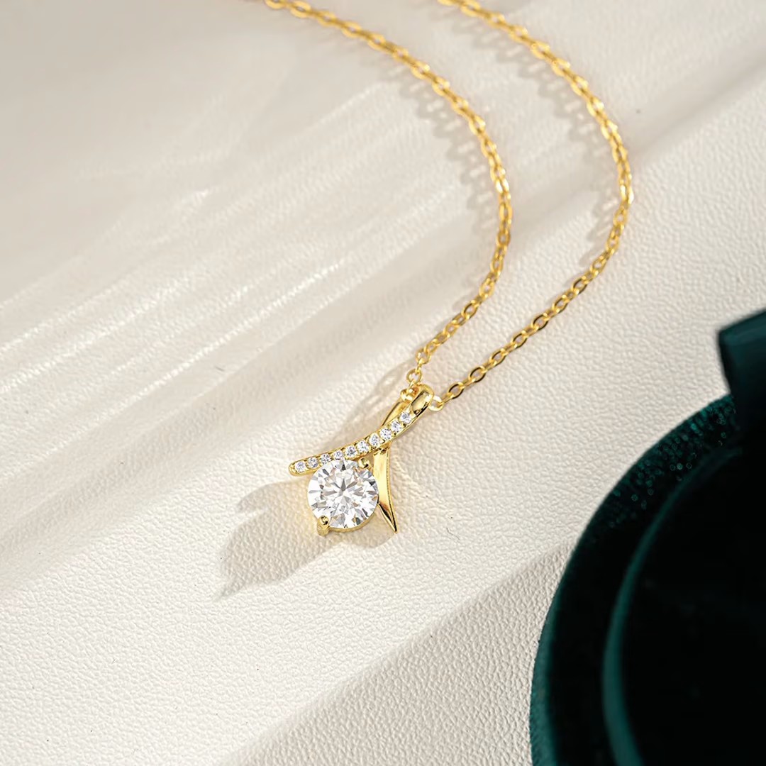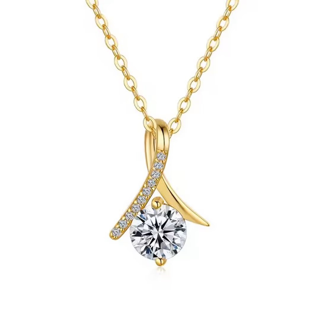 - الوصف: قلادة بتصميم حديث وفاخر مويسانيتي ذو جودة عالية مطلي بالذهب عيار 18 ، فضة إسترليني